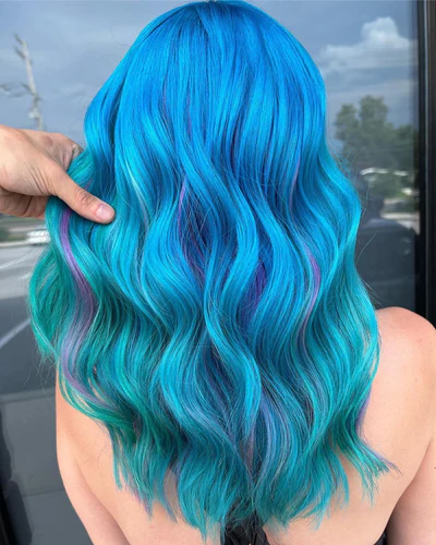 Cyan Sky is a one-of-a-kindΒ vibrant turquoise hair dye.